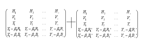 現(xiàn)行的彩色電視系統(tǒng)中,由行向量H,幀向量V,亮度向量Y組成的,表達(dá)彩色信息的是由紅向量R,綠向量G,蘭向量B的三維線性空間。也可用以下的矩陣來(lái)表示: