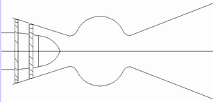 我所設(shè)想的飛機(jī)發(fā)動機(jī)如圖所示,與現(xiàn)有的飛機(jī)發(fā)動機(jī)相比,只有進(jìn)氣的壓縮蝸輪部分,沒有排氣的蝸輪部分,后段高溫部分只是一個(gè)空殼子。進(jìn)氣壓縮蝸輪由另一臺發(fā)動機(jī)帶動壓縮空氣。蝸輪錐頭可以向氣流方向運(yùn)動,堵住進(jìn)氣口,成為箭發(fā)動機(jī)。一臺發(fā)動機(jī)有多種功能,這樣設(shè)計(jì)會有如下優(yōu)點(diǎn):