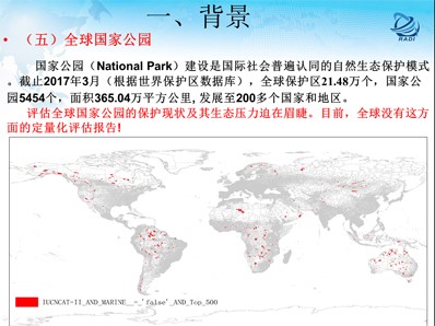 保護(hù)區(qū)評(píng)價(jià),目前開(kāi)展的是全球國(guó)家公園保護(hù)現(xiàn)狀和生態(tài)壓力評(píng)估正在做工作,首先為什么要干這項(xiàng)工作,加強(qiáng)國(guó)家公園保護(hù)狀態(tài)和生態(tài)壓力定量化評(píng)估,有助于人類(lèi)了解地球上最美麗的生態(tài)環(huán)境資源的性質(zhì)和數(shù)量以及人類(lèi)自身對(duì)這些資源產(chǎn)生了什么的壓力,有助于提高人類(lèi)關(guān)于自然保護(hù)與持續(xù)發(fā)展的科學(xué)認(rèn)識(shí)和面對(duì)生態(tài)環(huán)境退化的應(yīng)對(duì)能力。有助于提升我國(guó)在世界上生態(tài)環(huán)境保護(hù)的地位和話(huà)語(yǔ)權(quán)。有助于提升我國(guó)在全球國(guó)家公園建設(shè)、生態(tài)安全維護(hù)和“一帶一路”戰(zhàn)略布局都具有重要的參考價(jià)值。通過(guò)研究世界上最好的范例,對(duì)中國(guó)國(guó)家公園體制改革試點(diǎn)、中國(guó)國(guó)家公園建設(shè)彎道超車(chē)和中國(guó)保護(hù)區(qū)事業(yè)健康發(fā)展均具有一定的借鑒意義。