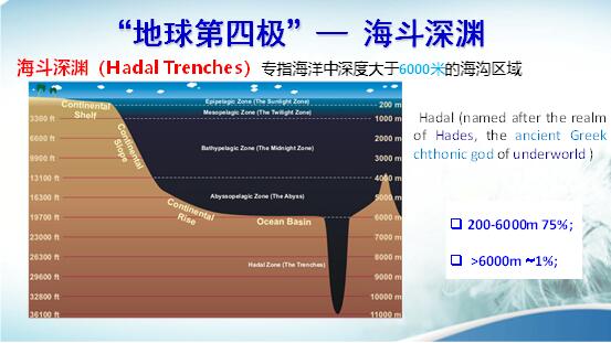 先介紹一下有關(guān)常識。在海洋水深大于6000米時,叫海斗深淵,又叫地球的第四極。地球的四個極就是南極、北極、珠穆朗瑪峰和海斗深淵。