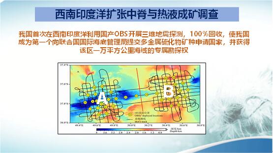 在全球的海洋中,大部分海洋為公海,有些國家已圈出自己具有礦產(chǎn)調(diào)查和開采權(quán)的某片海域。我們國家在西南印度洋布設(shè)了“中國結(jié)”的地震臺網(wǎng),開展三維地震觀測。并第一個向聯(lián)合國國際海洋海底管理局申請,獲得了這一地區(qū)一萬平方公里的多金屬硫化礦物的專屬開采權(quán)。