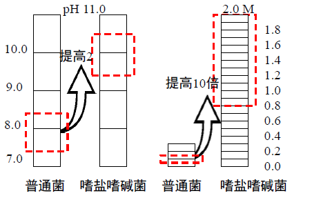 針對(duì)新型的嗜鹽嗜堿硫氧化系統(tǒng),我們自行篩選了嗜鹽嗜堿極端微生物,并敲除降低單質(zhì)硫產(chǎn)生的基因途徑,對(duì)其進(jìn)行遺傳基因改造。該微生物可在較高的pH值和鹽度范圍內(nèi)生長,相對(duì)普通菌群的耐受能力大大提高(圖1-4)。