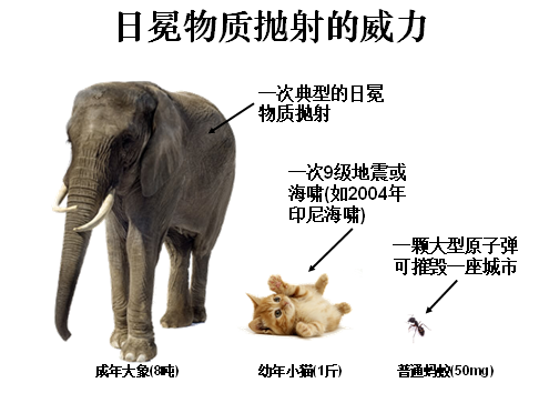 萬物生長靠太陽,地球地表的天氣與太陽有關(guān)系,而空間天氣的變化也與太陽有關(guān)。太陽上有一種日冕物質(zhì)拋射的現(xiàn)象,太陽把一團物質(zhì)拋射出來,形成高速的太陽風(fēng),它拋射的能量是地球上原子彈威力的1600萬倍,一顆原子彈可以摧毀一座城市,足見威力。 而與太陽拋射的能量相比,差距太大了。
