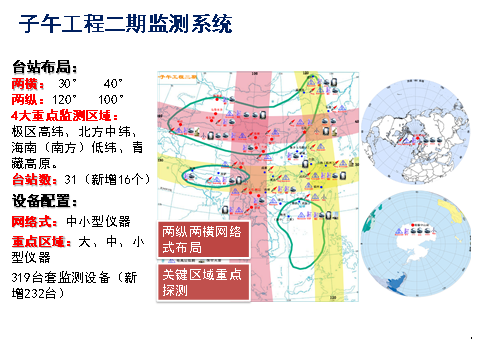 四聚焦:對極區(qū)的高緯度地區(qū),對我國漠河的北方,海南島的南方和青藏高原地區(qū)增加一些大型設(shè)備,做到精細探測。