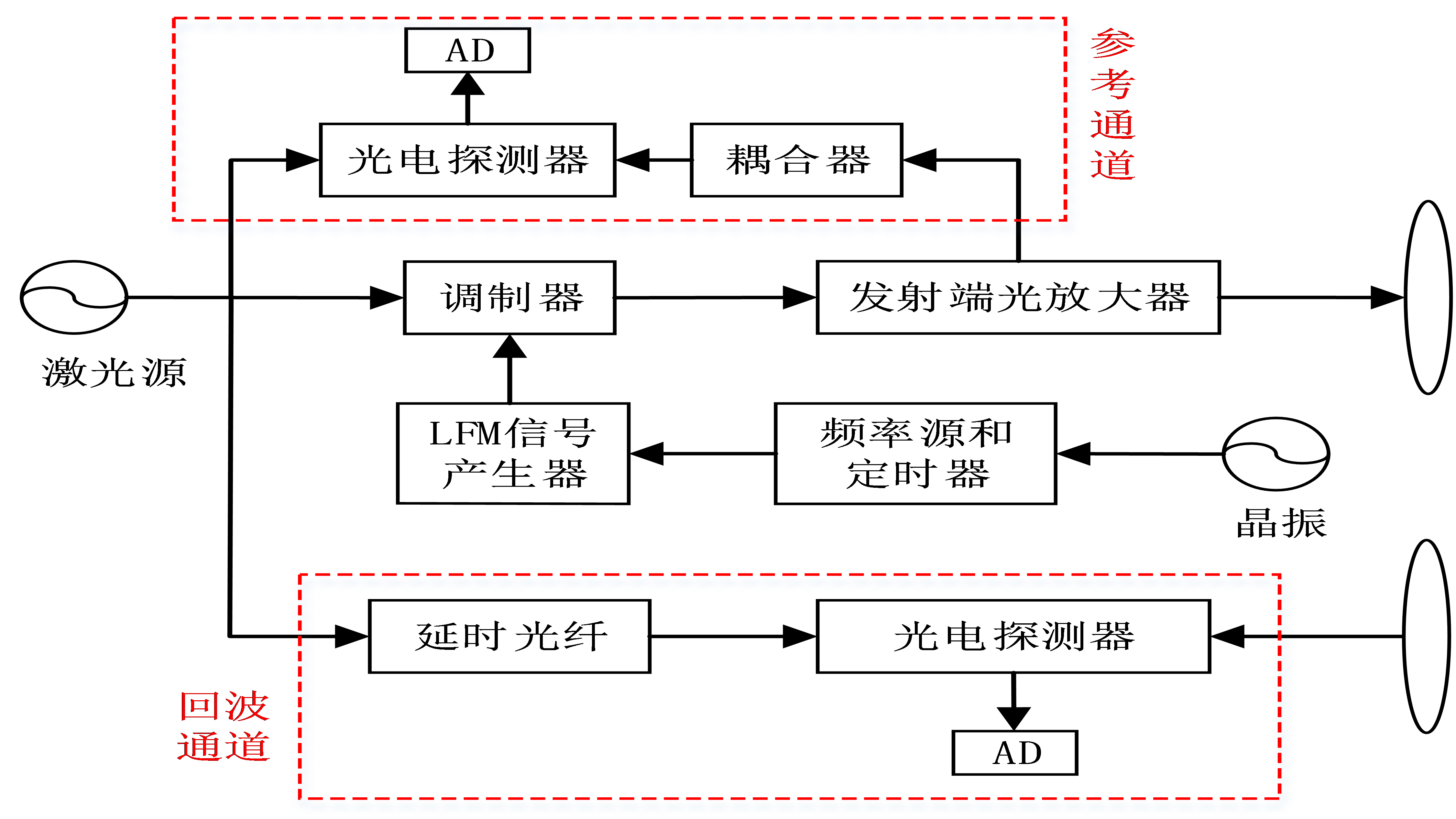 在目標(biāo)距離較遠(yuǎn)或合成孔徑時(shí)間內(nèi)目標(biāo)距離變化量較大的情況下,可以考慮采用本振數(shù)字延時(shí)的方法保持SAL信號(hào)的相干性,其基本思路是設(shè)置本振參考通道,通過自外差的方式將本振信號(hào)頻率不穩(wěn)引入的相位誤差記錄下來,在數(shù)字域延時(shí)后對(duì)回波信號(hào)進(jìn)行補(bǔ)償。