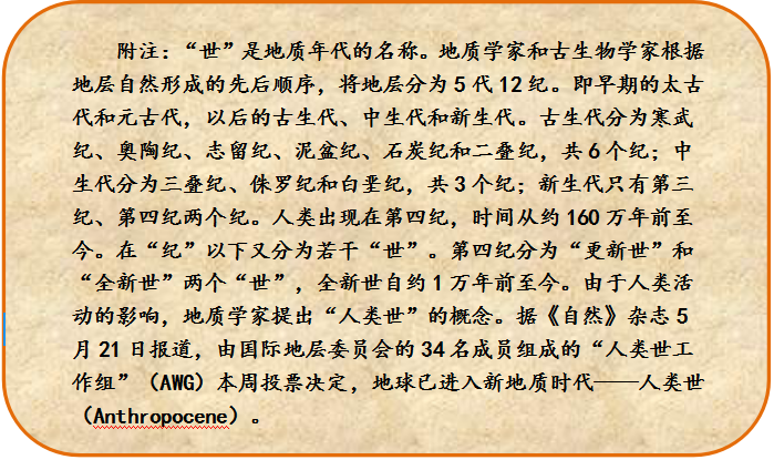 在2000年的一個國際會議上,1995年諾貝爾化學獎得主保羅-克魯岑提出,當今人類活動對自然環(huán)境的影響已經超過了自然狀態(tài)的變化,應該定義一個新的地質時代,叫人類世。我國科學家劉東生院士參加了此會,回國后就極力推薦這個詞。