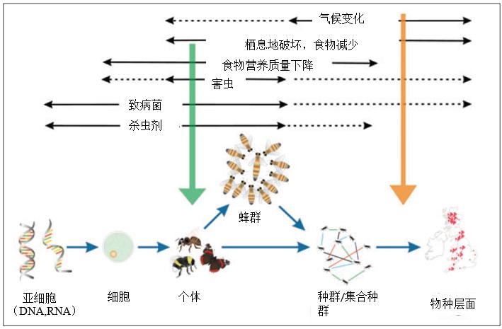 圖3 各種環(huán)境因素對傳粉昆蟲的各個(gè)層面的影響