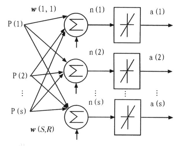 人工神經網絡的模型現(xiàn)在有數(shù)十種之多,應用較多的典型的神經網絡模型包括BP神經網絡、Hopfield網絡、ART網絡和Kohonen網絡。下圖是一種簡單的線性神經網絡模型: