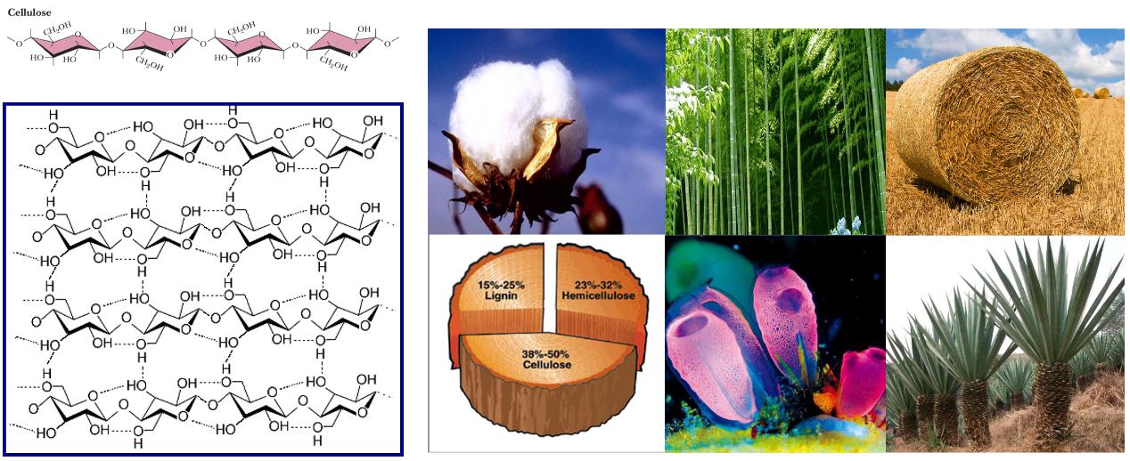 圖1 纖維素分子結構、聚集態(tài)結構與來源